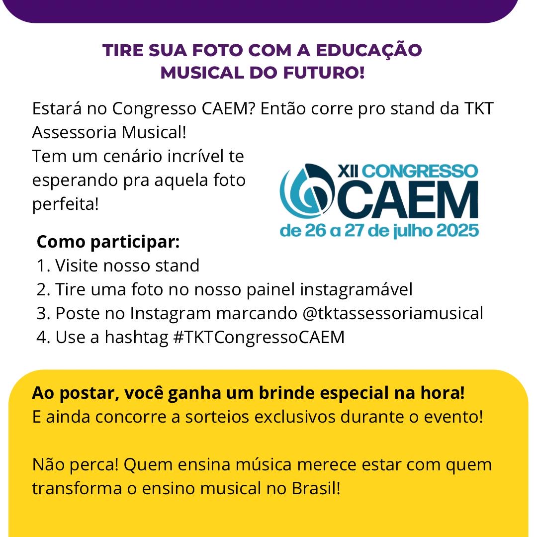 Visite nosso stand, tire uma foto perto do banner TKT, publique no instagram marcando @tktassessoriamusical